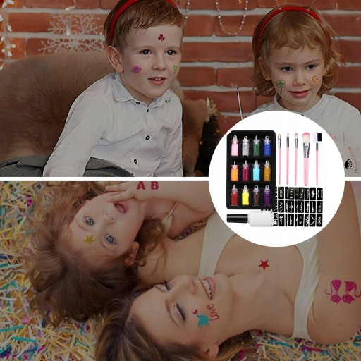 ✅Doskonały Pomysł na Prezent: Ten zestaw to także świetny pomysł na prezent. Zaskocz bliskich oryginalnym prezentem, który pozwoli im stworzyć własne, brokatowe dzieła sztuki na skórze.