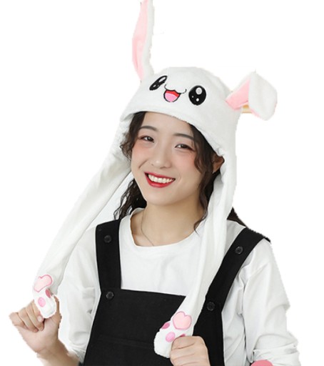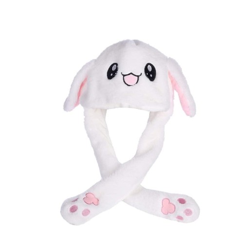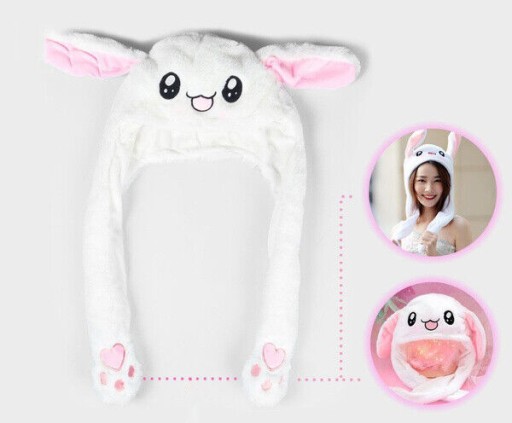 🎀 Pluszowa czapka z nausznikami ma 2 uszy królika, które wyskakują po naciśnięciu łapek. Świetne do zabawnych zdjęć.