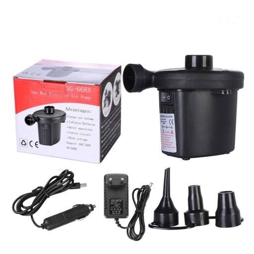 Elektryczna pompka jest mała i poręczna, przeznaczona do pompowania i wypompowywania powietrza z różnych przedmiotów np. piłek, materacy, dmuchane poduszki, pontony itp.