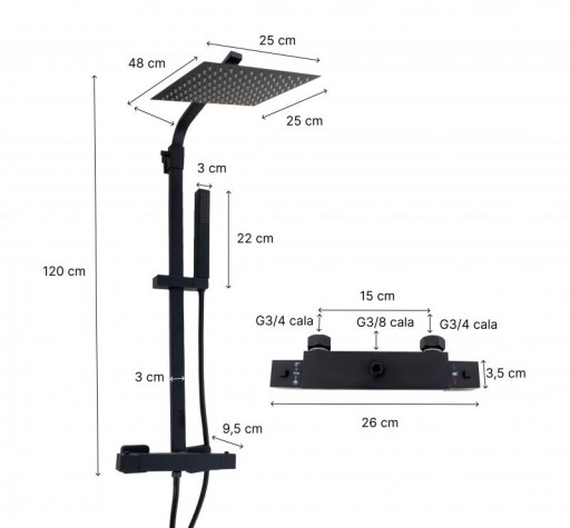 Kolumna prysznicowa z baterią termostatyczną i zestawem natryskowym - czarna