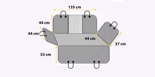 Przedstawiamy praktyczną matę do samochodu dla zwierząt. Produkt pełni rolę kojca i pokrowca na tylne siedzenia. Dzięki zamkom błyskawicznym w narożach umożliwia szybkie dostosowanie do aktualnych potrzeb. Mata zapobiega zabrudzeniu się foteli oraz ogranicza pozostawienie sierści na fotelach. Mata jest duża i posiada solidne zaczepy zapobiegające zsuwaniu. Po przymocowaniu zaczepów i zapięciu zamków tworzy hamak, w którym może poruszać się zwierzę (przypięte smyczą do blokady pasów bezpieczeństwa), po rozpięciu zamków bocznych pełni funkcję pokrowca na siedzenie, na którym może również siedzieć opiekun zwierzaka. Matę można również rozłożyć w bagażniku po odpowiednim zamocowaniu wszystkich zaczepów.