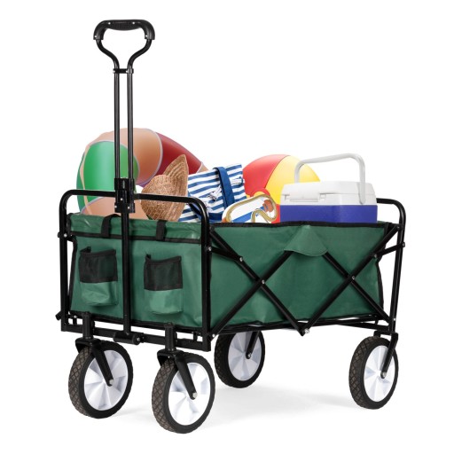 Складная большая тележка для транспортировки в пляжный сад, зеленая, с усиленным дном