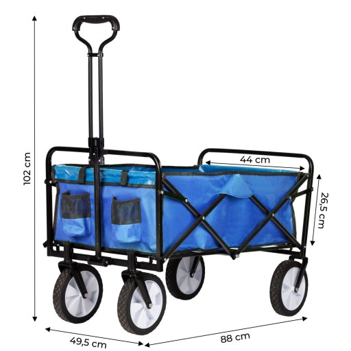 Складная большая тележка для транспортировки в пляжный сад, синяя, с усиленным дном