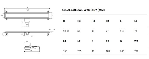 ODPŁYW LINIOWY 70 CM STAL NIERDZEWNA POLEROWANA EXCELLENT STILIO