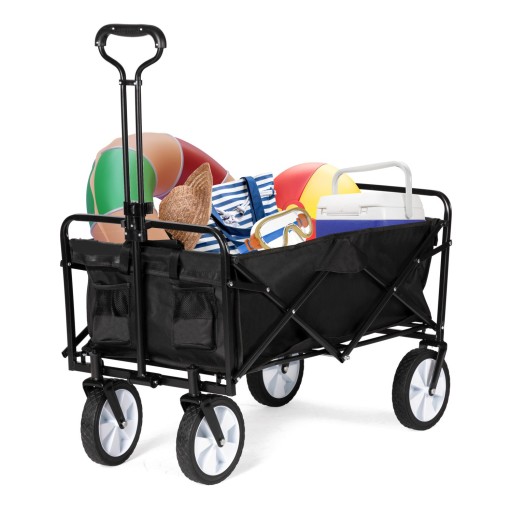 Складная большая тележка для транспортировки на пляж и сад, черная, с усиленным дном