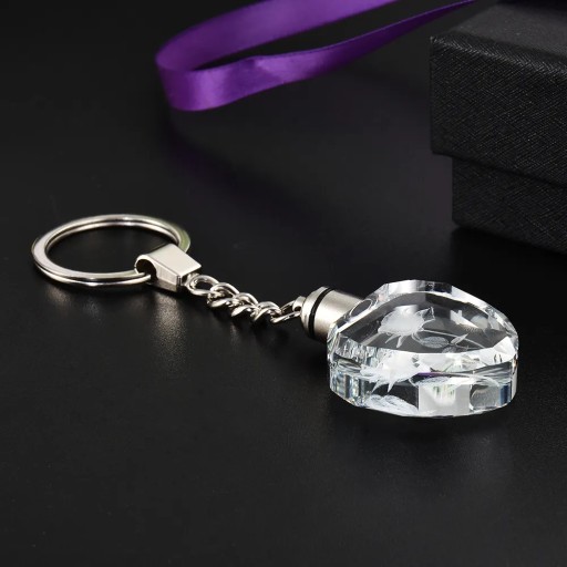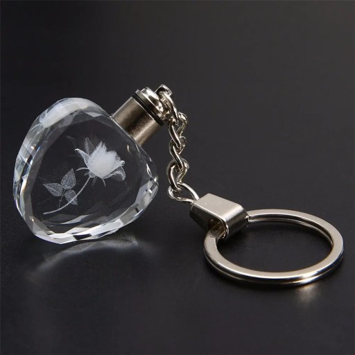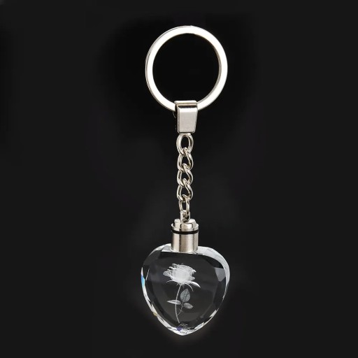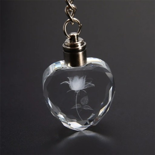 Brelok kryształowe serce z podświetlana na czerwona różą to niezwykle oryginalny i stylowy upominek dla ukochanej osoby.
