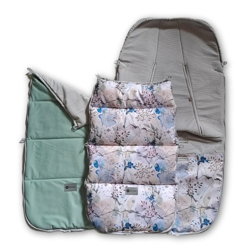 3- częściowy, wielofunkcyjny śpiworek do fotelików samochodowych (z 3- i 5- punktowymi pasami) oraz wózków.