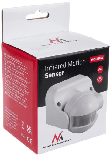 НАРУЖНЫЙ ДАТЧИК ДВИЖЕНИЯ В СУМЕРКАХ MACLEAN PIR ДАТЧИК 180° ДИАПАЗОН 12 м