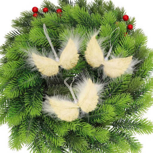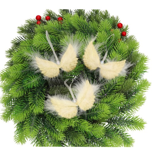 - Nasze skrzydełka w połączeniu z białymi bombkami, białymi kwiatami i zawieszkami zagwarantują spektakularny efekt naszej dekoracji.