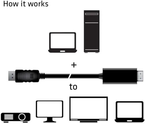 Kabel DisplayPort 1.4 na HDMI 2.0b HDR 4K60Hz aktywny adapter 2 m Uwaga! Opis tego produktu został przetłumaczony automatycznie.