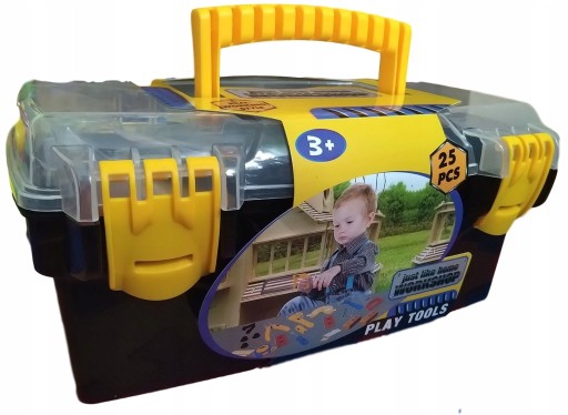 ZESTAW MAŁEGO MAJSTERKOWICZA W SKRZYNCE - spodoba się każdemu małemu miłośnikowi majsterkowania W poręcznej skrzyneczce znajduje się zestaw najpotrzebniejszych narzędzi takich jak: