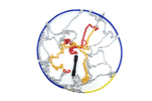 Łańcuchy śniegowe wykonane są z hartowanej stali o wysokiej odporności.