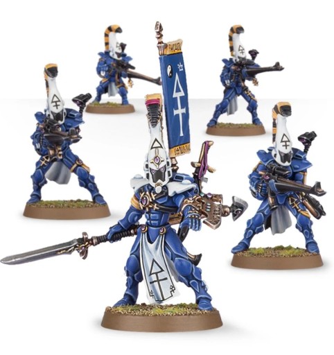 Dire Avengers w tym zestawie są uzbrojeni w katapulty z shurikenami, a także w wystarczającą ilość dodatkowych części, aby każdy z nich mógł być wyposażony we własną sakiewkę z amunicją. W zestawie znajdują się opcjonalne części do stworzenia Exarcha, który może być uzbrojony w katapultę shurikenów, dwie katapulty shurikenów, diresword i pistolet shurikenów lub broń mocy i shimmershield. W zestawie znajdują się również dwie głowy Exarchów (jedna w hełmie, druga naga) oraz opcjonalny tylny sztandar, aby jeszcze bardziej wyróżnić przywódcę jednostki. Oprócz tego na ramie znajduje się mały posąg Asurmena.