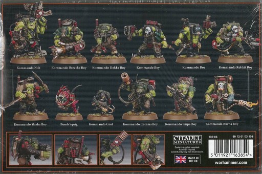 Ten zestaw umożliwia zbudowanie jednostki składającej się z 10 Ork Kommando, w tym Noba, Bomb Squiga i Kommando Grota – tak samo dobrze nadaje się do gier Kill Team, jak i jest uniwersalnym wyborem elit dla twojej armii Warhammera 40 000 Orków. Komanda specjalizują się w bardzo niekonwencjonalnych (jak na Orków) taktykach, takich jak ukrywanie się w cieniu i wyskakiwaniu z pułapek, a także używają wszelkiego rodzaju niezwykłego sprzętu. Dzięki szerokiej gamie opcji broni będziesz mógł dostosować ją do różnych parametrów misji, mając mnóstwo zapasowych bitów do wykorzystania.
