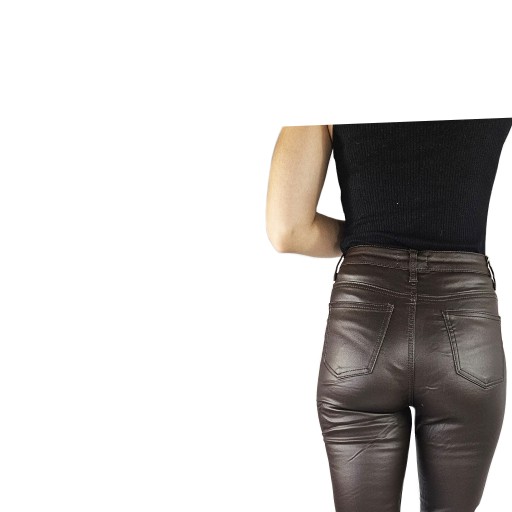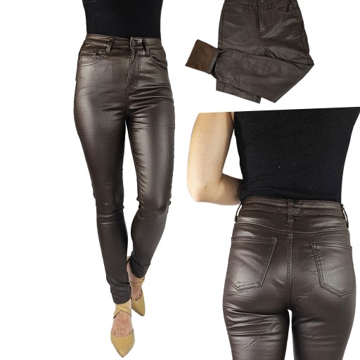 - Świetne spodnie woskowane imitującą skórę kolor posiadają wysoki stan. Świetne do sportowego obuwia ale idealnie też sprawdzą się w połączeniu ze szpilkami, dzięki swojej uniwersalności, pasują niemal do każdej stylizacji. Elastyczny materiał podkreśla kobiecą sylwetkę. Spodnie są dopasowane, rozciągają się. Podkreśl swoje kobiece kształty! Spraw, by Twój codzienny Look był niepowtarzalny. Spodnie po obu stronach posiadają kieszenie.