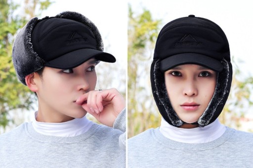 CZAPKA ZIMOWA MĘSKA Z DASZKIEM NAUSZNIKI Z FUTERKIEM