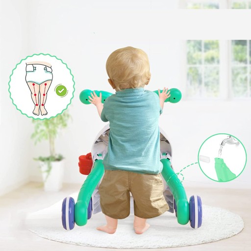 Zabawka została tak zaprojektowana by od pierwszych chwil życia dziecka rozwijać je fizycznie i pobudzać rozwój jego zmysłów. Maluch pozna nowe kolory i kształty. Dzięki ruchomym elementom zwiększa się zdolność motoryczną dziecka oraz koordynację ręka-oko. Pchacz - chodzik wspomaga stabilizację malucha podczas nauki chodzenia.