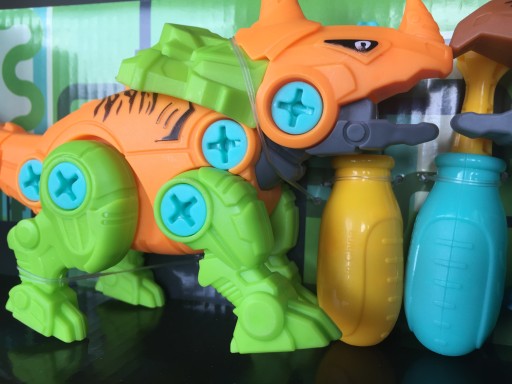 Wyjątkowy zestaw pozwoli stworzyć własnego dinozaura. Od stóp do głów: łatwo zmontujesz całego zwierzaka. Wybierzesz na przykład ogon w kolorze pomarańczowym czy zielonym? A co powiesz na niebieskie łapy? Baw się z przyjaciółmi i sprawdźcie, kto ma najsilniejszego dinozaura.