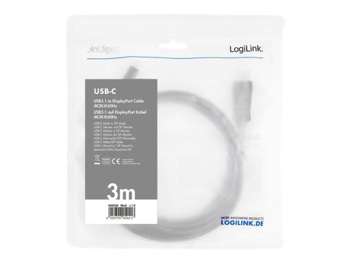 LOGILINK UA0336 LOGILINK - Kabel USB-C 3.2 Gen do DisplayPort 1.2 m/m ,dł. 3m