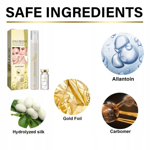 - 【Poprawa elastyczności skóry】 Peptyd nici z białka złotego materiału zapewnia skuteczny efekt naprężenia i podnoszenia skóry. Ekstrakt platynowo-złoty z nano Spray Face może stymulować regenerację komórek skóry.