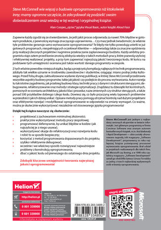 Steve McConnell wie więcej o budowie oprogramowania niż ktokolwiek inny; mamy ogromne szczęście, że zdecydował się podzielić swoim doświadczeniem oraz wiedzą w tej ważnej i oryginalnej książce.