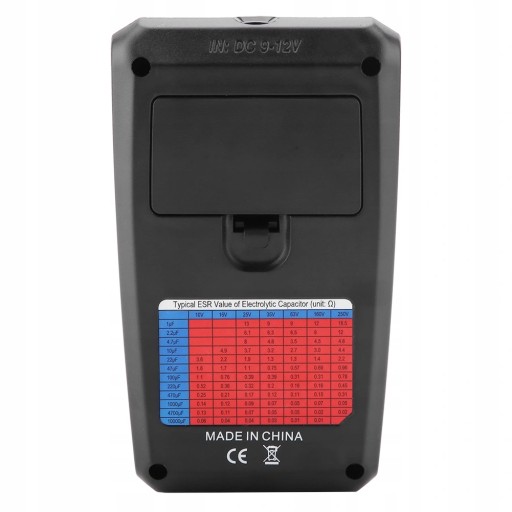 Z tyłu znajduje się tabela „typowa wartość ESR kondensatora elektrolitycznego”, służy ona tylko do orientacji, są to typowe wartości dla standardowego kondensatora elektrolitycznego w temperaturze pokojowej.