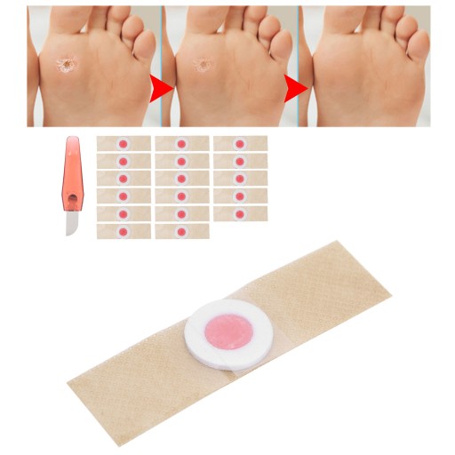1. Usuń odciski, brodawki, kolce i kalus ze stóp. Podkładki do usuwania kukurydzy są zaprojektowane z otworem do zakrycia kukurydzy lub kalusa.