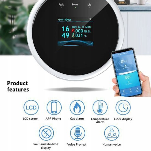 Tuya Wifi czujnik gazu ziemnego domowy,baterie