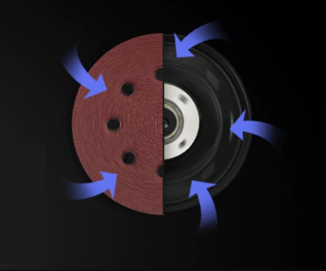 Dodatkowo dzięki otworom znajdującym się na papierze, możliwe jest bezproblemowe odsysanie pyłu powstałego podczas szlifowania powierzchni. Jest to znacznie lepsze rozwiązanie niż odprowadzanie pyłu wyłącznie krawędziowe
