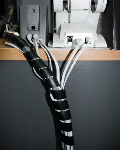 Organizator przewodów wykonany z elastycznego tworzywa pozwoli ułożyć kilka splątanych przewodów w estetyczną i zgrabną wiązkę.