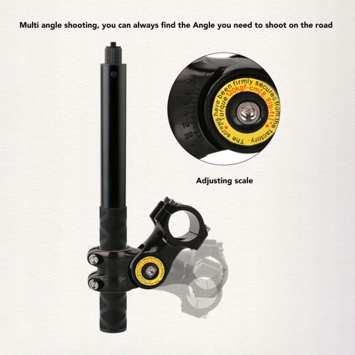 2. Regulowany kąt: Kąt wspornika można łatwo dostosować do żądanej pozycji. Za pomocą dołączonego klucza możesz bez wysiłku ustawić uchwyt pod kątem 60 stopni, zapewniając idealny kąt do uchwycenia swojej przygody.