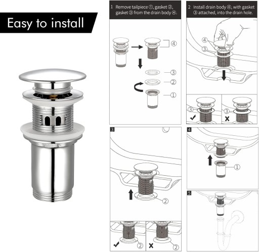 - Chromowany solidny mosiądz: Zawór spustowy zlewu jest solidnie skonstruowany z solidnej mosiężnej sprężyny dociskowej, która zapewnia dobre odbicie i szybkie uszczelnienie, a opróżnia się po prostym naciśnięciu.