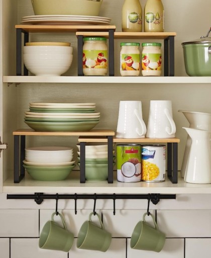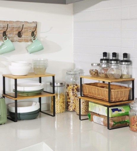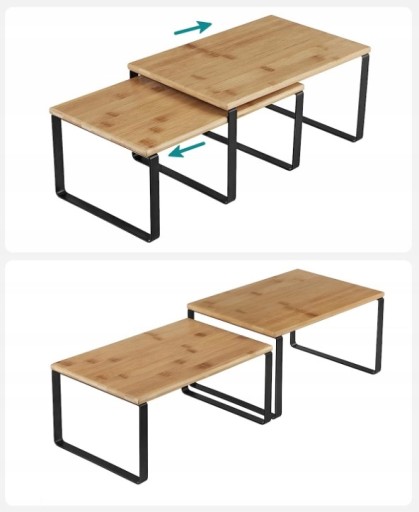 Półki można ułożyć w stos, jedna na drugiej, wsunąć mniejszą pod większą lub ustawić niezależnie.