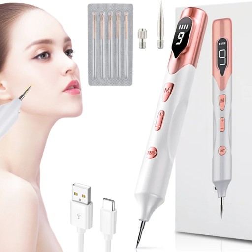 - Długopis posiada 9 poziomów mocy, dzięki czemu możesz w precyzyjny sposób dobrać moc urządzenia do zmiany skórnej, którą chcesz usunąć.