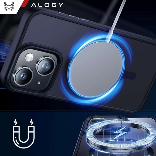 ▶️ Etui do iPhone 15 mag safe Matt Case Cover matowe obudowa Alogy Ring pancerne na telefon Granatowe + Szkło