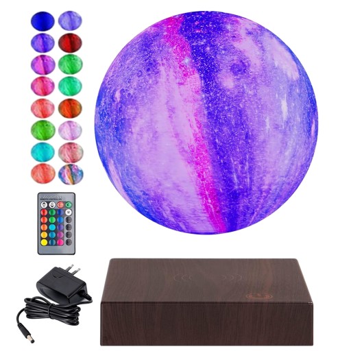 - Lampa Galaxy Moon wykorzystuje technologię lewitacji magnetycznej, aby automatycznie unosić się i obracać w powietrzu.