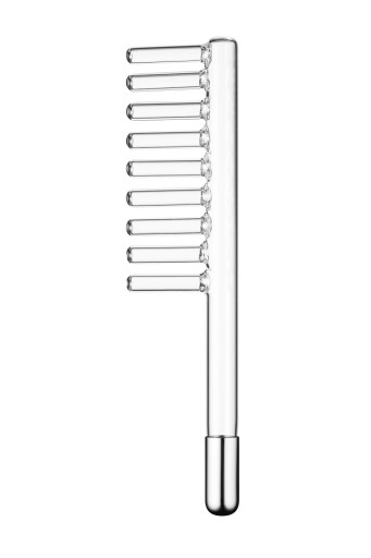 ▶ Wykonanie zabiegu przy użyciu prądów D’Arsonvala odbywa się za pomocą specjalnych szklanych pelot - elektrod.
