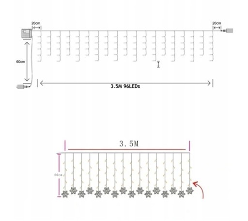 - Zawartość opakowania: 1 x LAMPKI KURTYNA ŚWIETLNA Płatek śniegu