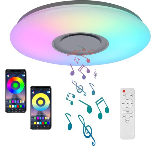 Sterowane pilotem lub aplikacją. Wyposażony w głośnik Bluetooth.