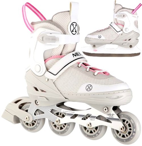 ⚡NH18188A 2w1 SZARO-RÓZOWE ROZM.M(34-38) ŁYŻWOROLKI Z WYM. PŁ. HOKEJOWĄ NILS EXTREME⚡