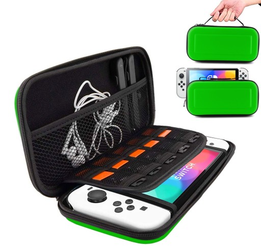 Etui jest idealnie dopasowane do Twojej konsoli Nintendo Switch OLED - idealnie ją zabezpiecza. Wewnątrz posiada specjalne przegródki mieszczące aż 10 kartridżów z grami. W górnej części futerału znajduje się specjalne miejsce na przechowywanie akcesoriów do konsoli takich jak ładowarka, powerbank, słuchawki, pudełka z gier, itd. Pokrowiec posiada także praktyczną smycz do przenoszenia.