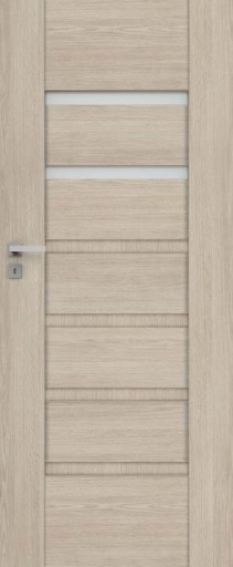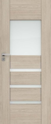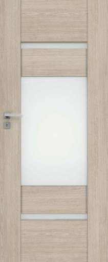 Skrzydła ramowe wykonane są w całości z płyty MDF. Grubość ramiaków pionowych wynosi 40 mm, a szerokość wynosi 160 mm, co zapewnia trwałą konstrukcję skrzydła drzwiowego. W drzwiach zastosowano szybę MAT DRE o grubości 4 mm oraz płyciny płaskie HDF.