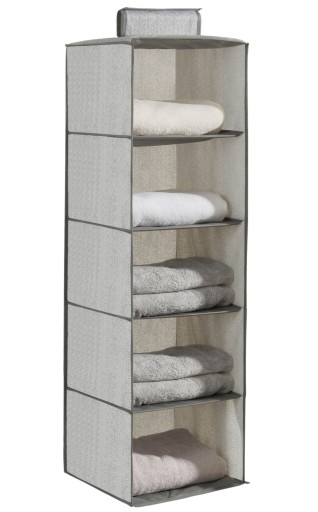 Wiszący organizer stanowi świetny element organizacyjny w garderobie sypialni czy nawet pokoju dziecka. Zawieszony drążku w szafie nie zajmuje przestrzeni, jednocześnie dając miejsce do przechowywania różnych elementów takich jak ubrania, pościel, czy zabawki. Dzięki składanej formie łatwo go przechowywać nawet gdy nie jest obecnie użytkowany.