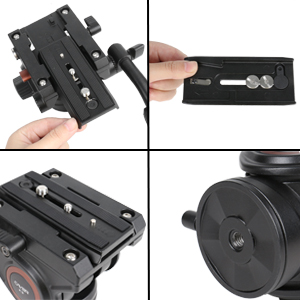 - - Płytka QR kompatybilna z 501PL ze śrubami kamery 1/4 i 3/8 cala; Płaska podstawa 75 mm ze śrubą z gwintem 3/8 cala na dole (w zestawie z adapterem śruby 3/8 cala na 1/4 cala), dzięki czemu głowica jest uniwersalna dla większości statywów, suwaków, wysięgnika lub dźwigu