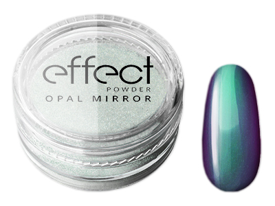 Opal Mirror Effect Powder to połączenie efektów lustra i kameleona, czyli dwóch najmodniejszych trendów w manicure. Pyłek zdumiewa lustrzanym blaskiem i w zależności od kąta padania światła przepięknie mieni się na niebiesko, zielono i purpurowo, przywodząc na myśl kamień szlachetny.