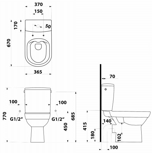 Компактный унитаз 37x77x67см БЕЗОБЕДНИК вертикальный/горизонтальный