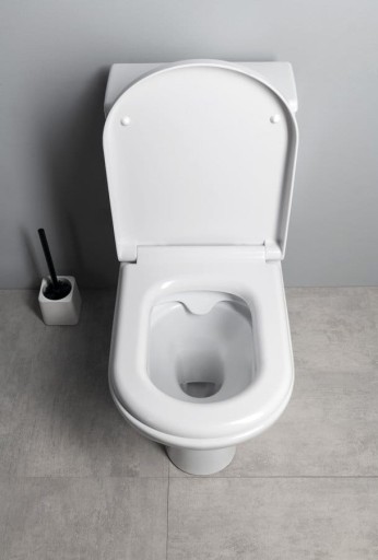 Deska sedesowa z systemem SOFT CLOSE Dzięki systemowi hydraulicznemu zarówno pokrywa jak i deska sedesowa opadają powoli na misę. Stopniowe opadanie deski i pokrywy zapewnia bezpieczeństwo i zapobiega uszkodzeniom deski i misy WC.