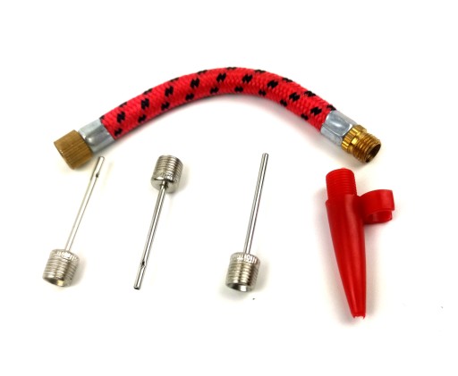 Zestaw 4 końcówek do pompowania np. piłek, materacy, kół, zabawek plażowych i ogrodowych. Końcówki montowane do pistoletu do pompowania. Plus wężyk, przedłużka do pompowania aby jeszcze precyzyjniej i dokładniej dotrzeć w trudno dostępne miejsca.