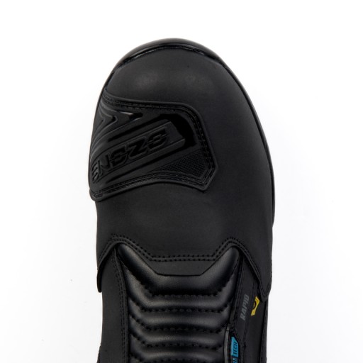 Skórzane buty motocyklowe z gumową podeszwą i wyściółką poliester mesh. Mają w wodoodporną, oddychającą membranę HIPORA, usztywniony czubek oraz wzmocnienie pod dźwignię zmiany biegów. Zapinane na obustronny zamek i rzep. Antybakteryjna wkładka i elastyczne panele zwiększają komfort użytkowania.