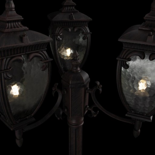 Aluminiowa obudowa w dwóch odcieniach: czarnym ze złotem i antycznym brązem. Plafon - szkło PULEGOSO. Szeroki asortyment: lampy uliczne, ścienne, wiszące i podłogowe.
